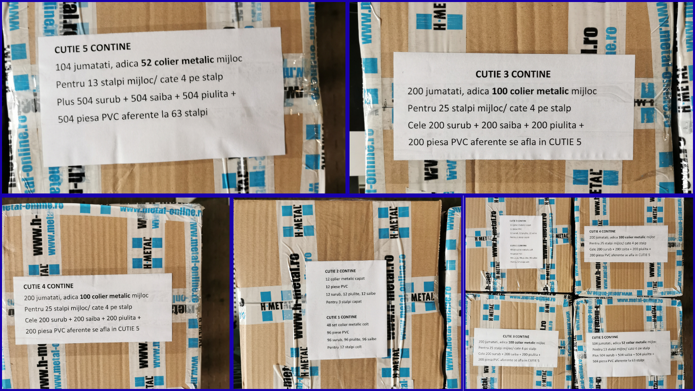 Fiecare cutie contine informatii clare despre numarul de piese si destinatia exacta in proiect.